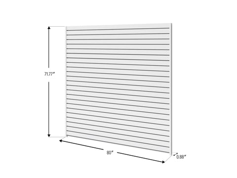 Get your gear off the floor with NewAge Products PVC Slatwall system. With 80 in. long panels, and 40 sq. ft. of coverage per box, and with a weight capacity of 100 lbs. per sq. ft. of evenly distributed weight when installed properly, our PVC Slatwall has been designed to keep your floors clear. PVC Slatwall provides functional storage and organization in garages, basements, workshops, laundry rooms and retail spaces. PVC panels can be installed in a variety of configurations – stacked, side-by-side, or as a full-wall solution, and can easily be installed around corners. Panels and trim pieces can be easily cut with a power tool to perfectly fit your space, and allow you to install around outlets, a central vac, and garage cabinets. Installation is made easy with interlocking panels, color-matched hardware and matte trim pieces. Install directly to wood studs or over drywall into wood studs with included hardware, or into masonry (hardware not included). For a finished, polished look, included in each box are two End Trims, one H-Shaped Trim, and one Corner Trim. PVC Slatwall is compatible with NewAge Products Slatwall Bracket to mount garage cabinets directly on to Slatwall. The storage possibilities are endless. With 3 in. on-center panels our PVC Slatwall is compatible with NewAge Products Slatwall Accessories and most standard slatwall accessories allowing you to fully customize your storage and organization. Turn your unused wall space into a storage and organization hub for all your tools and equipment with NewAge Products PVC Slatwall.