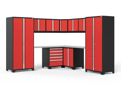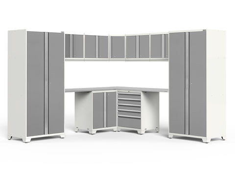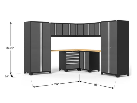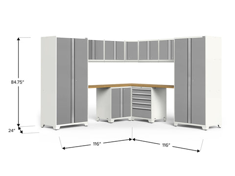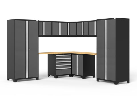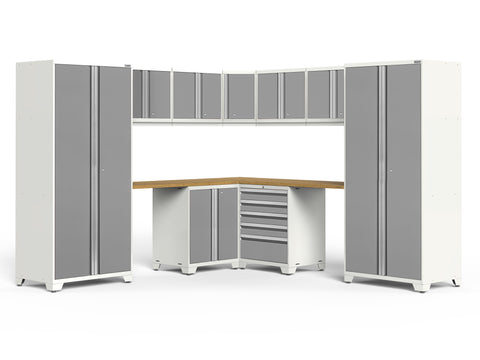 Get more out of your garage with the NewAge Products Pro Series garage storage solutions featuring heavy-duty 18-gauge welded steel cabinets with lockable doors, adjustable shelves, soft-close hardware, and full-length handles. This premium solution provides outstanding strength and longevity. Corner sets maximize space and provide seamless storage in underutilized areas. The Pro Series Multi-Use Locker offers a 1,000 lbs. weight capacity for storing heavy, bulky items like bins, golf clubs, and garden supplies. it features four height-adjustable steel shelves, removable multi-peg hooks, a closet rod, and lockable double-walled doors. The 2-Door Base Cabinet is a foundational piece of any garage setup, offering up to 1,000 lbs. of storage capacity. An interior pull-out shelf minimizes bending and provides easy access to stored items, while a cable management access hole keeps your power tools charged. The 5-Drawer Tool Cabinet offers the perfect organization for hand tools and quick-access items. With a 1,000 lbs. weight capacity, it features five full-extension soft-close drawers, steel dividers, and custom-fit foam liners to keep everything in place. The Wall Cabinets keep your gear off the ground, maximizing space. Each cabinet includes a valance to hide optional LED lights and cables, with a height-adjustable steel shelf for organization. Supports up to 200 lbs. each and comes with wall-mounting brackets for easy installation. The set is finished with a durable 1.25 in. thick Pro Series worktop, providing an ideal surface for any project. Available in Stainless Steel or Bamboo finishes, it’s designed to fit seamlessly over your Pro Series cabinets. The NewAge Products Pro Series is the ultimate all-in-one solution for garage organization, the world’s first modular garage cabinetry system, built for a lifetime of heavy use and crafted for those who demand the very best.