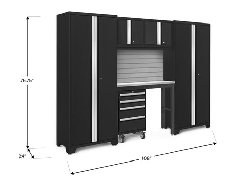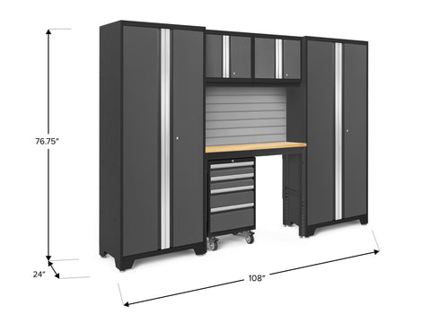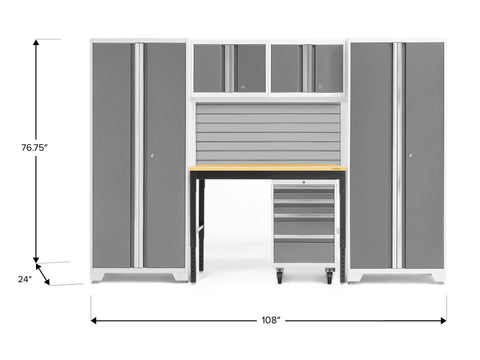 Designed to make a big statement in garages, workshops, mudrooms and other areas of your home, the Bold Series cabinet system instantly upgrades the look of your space, providing you with organized storage for all your belongings from sports equipment to gardening tools. Rolling Tool Drawer Cabinet and Wall Cabinets, and 30 in. Locker feature fully-welded steel frames, while the 30 in. RTA Locker ships flat packed, with steel frame panels that are easily assembled without the need for tools. Powder-coated finish for increased durability against rust, stains and corrosion. Full-length integrated handles allow you to quickly and easily access your gear, and adjustable steel shelves give you the flexibility to store items of all sizes, while fully-lockable doors ensure that your tools stay safe. The Workbench has an impressive weight capacity of 2,000 lbs.; giving you a rock-solid surface to support your tools, building materials, and everything you need to get the job done right. The height-adjustable legs allow you to set the optimal frame height for comfortable work sessions, with adjustable leveling legs that provide a perfectly level work surface on uneven garage floors. Get organized, and simplify your life, with Bold Series Garage Cabinets.