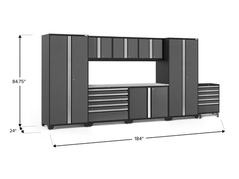 Get more out of your garage with the NewAge Products Pro Series garage storage solutions featuring heavy-duty 18-gauge welded steel cabinets with lockable doors, adjustable shelves, soft-close hardware, and full-length handles. This premium solution provides outstanding strength and longevity. The Pro Series Multi-Use Locker offers a 1,000 lbs. weight capacity for storing heavy, bulky items like bins, golf clubs, and garden supplies. it features four height-adjustable steel shelves, removable multi-peg hooks, a closet rod, and lockable double-walled doors. The 5-Drawer Tool Cabinet offers the perfect organization for hand tools and quick-access items. With a 1,000 lbs. weight capacity, it features five full-extension soft-close drawers, steel dividers, and custom-fit foam liners to keep everything in place. The Wall Cabinets keeps your gear off the ground, maximizing your space. The included valance hides optional LED lights and cables, while the height-adjustable steel shelf helps organize items. Supports up to 200 lbs. and includes wall-mounting brackets for easy installation. The set is finished with a durable 1.25 in. thick Pro Series worktop, providing an ideal surface for any project. Available in Stainless Steel or Bamboo finishes, it’s designed to fit seamlessly over your Pro Series cabinets. The NewAge Products Pro Series is the ultimate all-in-one solution for garage organization, the world’s first modular garage cabinetry system, built for a lifetime of heavy use and crafted for those who demand the very best.