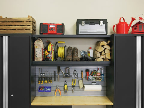 Ultra-strong, easy to install, and adaptable to your space; NewAge Products Pro Series Wall Mounted Steel Shelves offer a versatile way to keep organized, and maximize off-the-floor storage space in your garage.