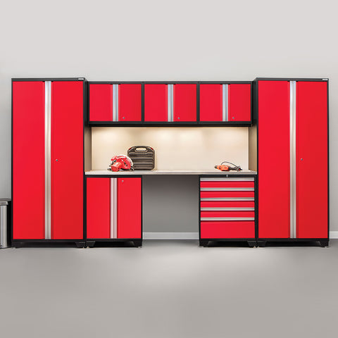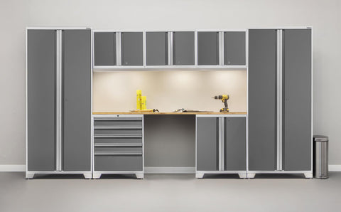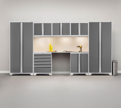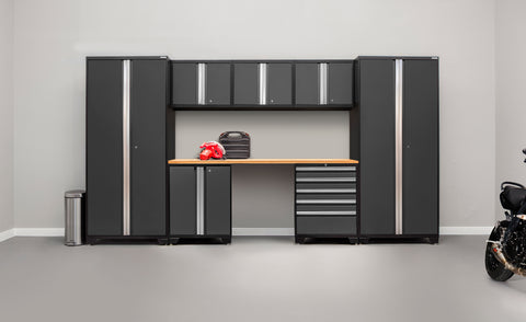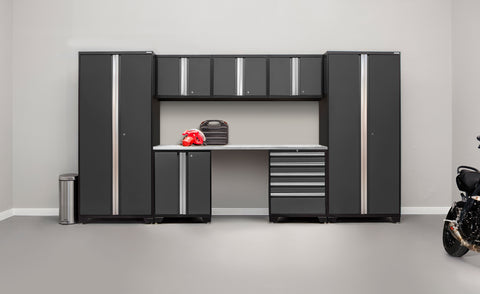 Get more out of your garage with NewAge Products Pro Series collection of storage solutions, engineered for strength, and designed with the premium features and modern look of a garage showroom. Our Pro Series Cabinets are built with heavy-duty steel frames, double-walled doors, adjustable steel shelving and leveling legs, for a premium storage configuration that adapts to your space and needs. Integrated full-length handles offer a clean, space-saving design for the lockable doors, while soft-close hinges and extra-strong ball bearing drawer slides give easy access to your tools and gear. NewAge Products Pro Series collection is the ideal all-in-one solution to your garage organization needs.