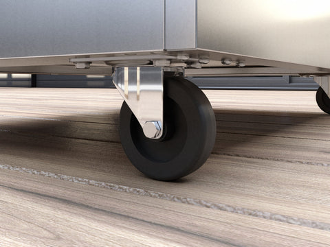 Bring the ultimate blend of style, functionality, and mobility to your outdoor entertaining space with the NewAge Outdoor Kitchen Sets with Casters. Designed for effortless versatility, this mobile solution lets you move your cooking station wherever the party takes you. The cabinetry is crafted from restaurant-grade 304 stainless steel with reinforced double-wall doors, ensuring all-season durability. The 3-drawer cabinet boasts a spacious design that supports heavy loads like dishes, charcoal, and hosting supplies. Its Two extra-deep drawers with soft-close slides offer full extension for easy access and the top drawer includes adjustable stainless-steel dividers to neatly organize cutlery and BBQ essentials. The Platinum Grill Series combines power, precision, and versatility to redefine outdoor cooking. Featuring a sturdy, dual-layered hood with a full-length no-slip grip handle, it locks in heat from three high-performance H-shaped burners delivering up to 78,000 BTUs for even heat distribution. Available in 33-inch (503 sq. in.), 36-inch (559 sq. in.), and 40-inch (631 sq. in.) cooking spaces, it caters to any grilling need. The precision-controlled rotisserie burner and easy-to-read temperature gauge ensure perfectly slow-cooked meals, while the integrated grease tray channels drippings away from the burners for hassle-free cleanup. Its Sear Zone Burners offer multi-purpose functionality, letting you simmer, boil, fry, or prepare sauces with ease. Designed for night-time grilling, the grill features flame-thrower direct-pilot ignition, LED accent control knobs, and heat-protected interior lights for seamless operation after dark. Durable and feature-packed, the Platinum Grill Series is your go-to solution for superior grilling performance. The set is topped with NSF®-certified stainless steel or strong and durable engineered stone countertops, available in Saga Gray or Nano Black, for effortless cleanup. Perfect for hosting unforgettable gatherings, the NewAge Outdoor Kitchen Set with Casters brings outdoor dining to life. Elevate your backyard experience and move the celebration wherever you want!